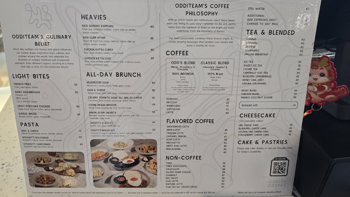 Oddity Coffee is a unique café nestled in Jakarta, Indonesia, known for its warm ambiance and friendly staff. With a passionate barista team, including Tama, who delights in sharing coffee knowledge, the café serves exceptional specialty beans, featuring flavors like fruity notes of mango and strawberry. The inviting two-story layout is perfect for both work and leisurely hangouts, complete with charming robot servers. Patrons rave about the impressive selection of cakes and savory dishes, like the indulgent Korean garlic croissant. Whether you’re there for coffee or a cozy chat, Oddity Coffee offers a memorable dining experience in a homely setting.