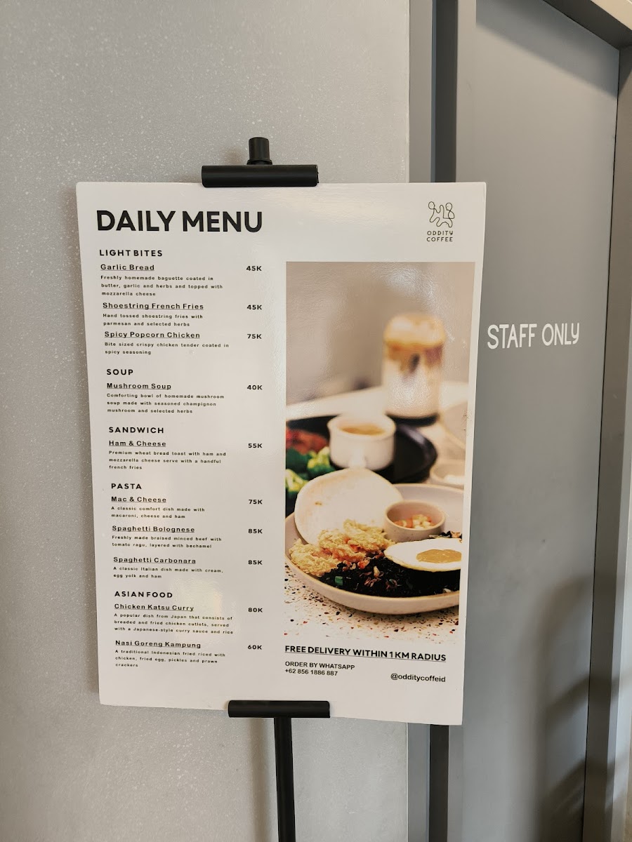 Welcome to Oddity Coffee, a captivating gem located in the heart of Jakarta at Jl. Gading Putih IV Jl. Sumagung 3 No.Ruko, Klp. Gading Tim. This café is not merely a pit stop for coffee—it's an experience that embraces warmth, community, and a shared passion for exceptional brews. From the moment you step inside, you sense the inviting aura, enhanced by friendly staff like Tama, our passionate barista, who enriches your visit with his knowledge and enthusiasm for coffee.